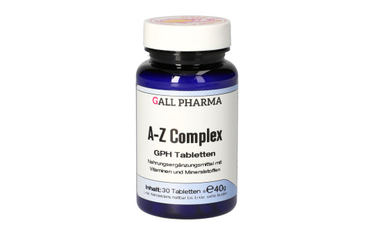 Selten bietet die Ernährung eine lückenlose Nährstoffversorgung, einseitige Essgewohnheiten, die industrielle und nicht schonende Verarbeitung der Lebensmittel und Stress schwächen den Körper. Es ist daher besonders wichtig dem Körper fehlende Vitamine, Mineralstoffe und Spurenelemente zu zuführen. A-Z Complex GPH Tabletten enthalten 25 wichtige Nährstoffe und bieten eine breite Basis mit allen wichtigen Vitaminen, Mineralstoffen und Spurenelementen in nur einer Tablette. Zur Aufrechterhaltung von Gesundheit und Leistungsfähigkeit ist die Einnahme über einen längeren Zeitraum empfohlen.