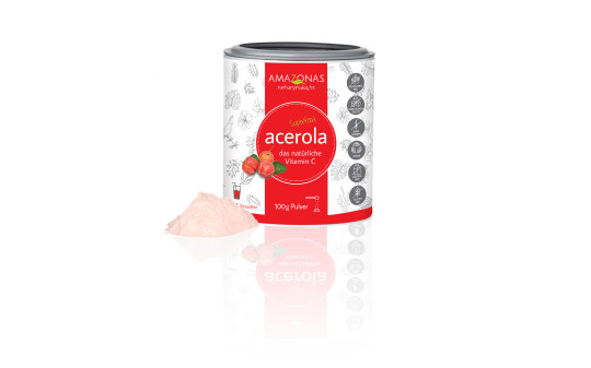 - AMAZONAS Acerola Pulver wird aus ganzen Kirschen hergestellt, die neben dem Vitamin C noch zahlreiche Mineralien und sekundäre Pflanzenstoffe enthalten. Diese natürlichen "Trägerstoffe" sind dafür verantwortlich, dass das Vitamin C vom Körper aufgenommen wird.