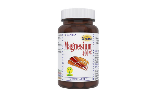 Nahrungsergänzungsmittel mit dem Mineralstoff Magnesium. Magnesium trägt zu einer normalen Muskel- und Nervenfunktion sowie zu einem normalen Energiestoffwechsel bei.
