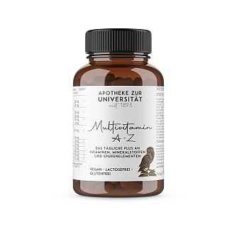 Im stressigen Alltag ist es oft schwierig, sich gesund und vitalstoffreich zu ernähren. Wenn wir weniger Mikronährstoffe aufnehmen, als der Organismus benötigt, leidet darunter über kurz oder lang unsere Gesundheit und Leistungsfähigkeit. Die komplexe MULTIVITAMIN A-Z Formel versorgt den Körper umfassend mit Vitaminen, Spurenelementen, Magnesium und wertvollen Pflanzenstoffen und trägt damit zur Deckung des täglichen Mikronährstoff-Bedarfs bei.