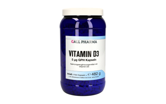Vitamin D3 (auch Colecalciferol genannt) gehört zur Gruppe der fettlöslichen Vitamine. Es nimmt eine Sonderstellung unter den Vitaminen ein, da es in der Haut mit Hilfe von UV-B-Strahlen des Sonnenlichts gebildet werden kann. Oft reicht die Sonneneinstrahlung während der Herbst- und Wintermonate nicht aus, um eine optimale Versorgung zu sichern. Zudem ist Vitamin D nur begrenzt speicherbar. Daher ist eine regelmäßige Ergänzung der Nahrung besonders in der sonnenarmen Zeit sinnvoll. Vitamin D3 fördert die Bildung und Reifung der Knochenstammzellen. Außerdem regelt es die Aufnahme von Kalzium und fördert den Einbau von Kalzium und Phosphat in Knochen und Zähnen (Mineralisation), dadurch werden diese hart und gestärkt. Eine Nahrungsergänzung mit Vitamin D3 5 µg GPH Kapseln kann bei mangelndem Aufenthalt in der Sonne, im Winter, für Schwangere und ältere Menschen sinnvoll sein.